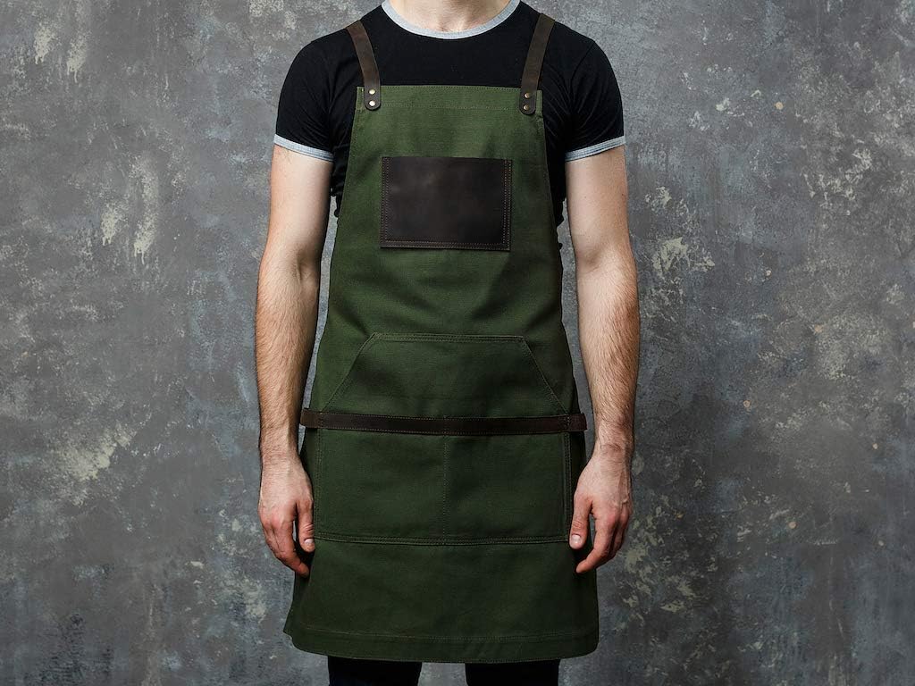 Work Apron in Non-Waxed Canvas with Cross Straps Adjustable