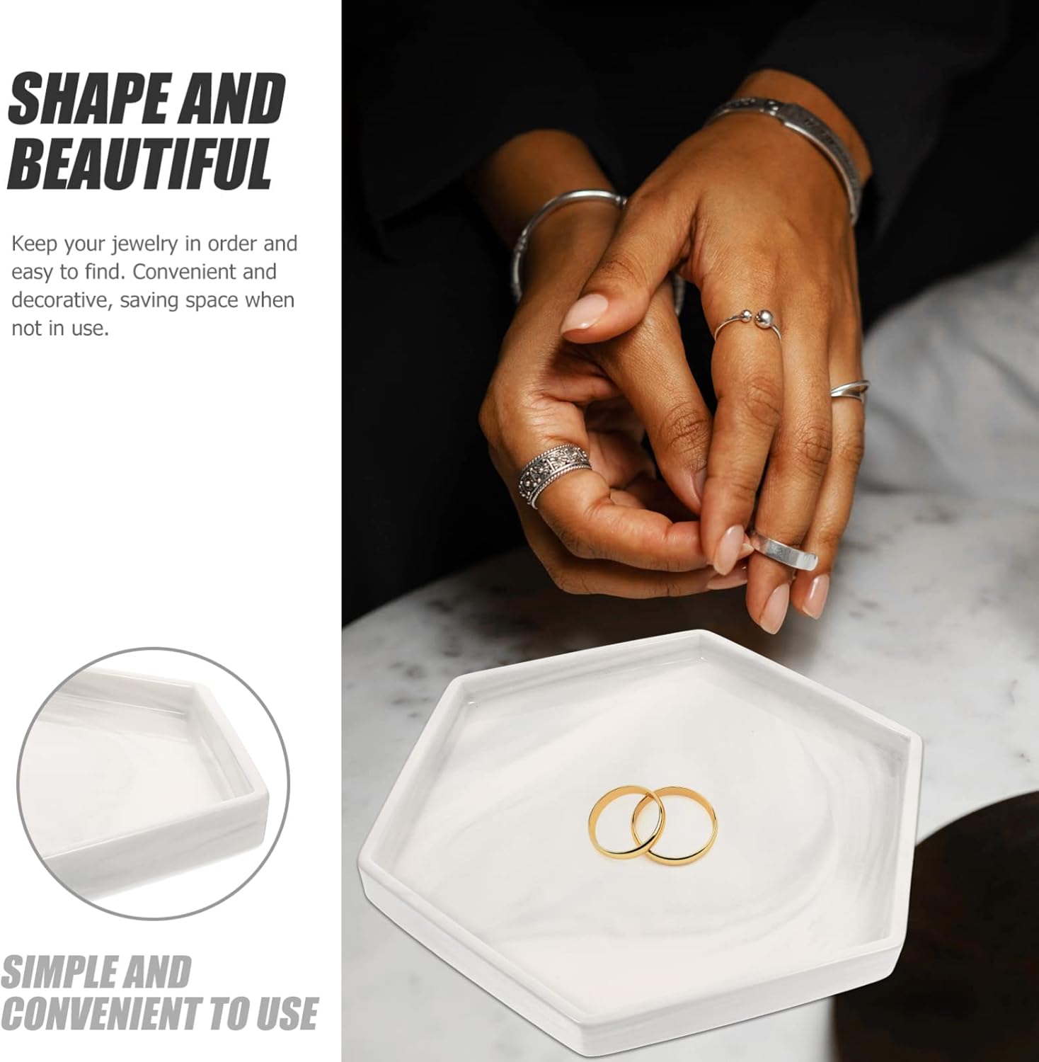 DescriptionCeramic Ring Dish Holder Porcelain Jewelry Tray Trinket Dish Plate Bathroom Vanity Tray for Keys Earring Bracelet Necklace Jewelry OrganizerFeatures-Color:As Shown;-Material:Ceramic;-Size:27.50X27.50X2.50cm/10.81X10.81X0.98in;Package Including1 x ceramic tray